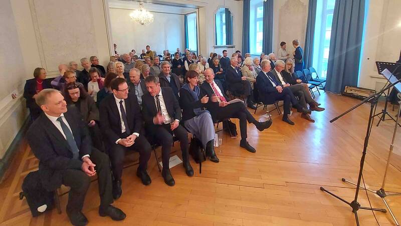 Im Mainzer Institut français gab die DFG Mainz am 14. Januar 2024 ihren Neujahrsempfang. Vizepräsident Günther INGENTHRON begrüßte neben den zahlreich erschienenen Mitgliedern auch wichtige Vertreter der Stadt Mainz und befreundeter Vereine. Ein erstes Grußwort richtete Sylvain THOLLON, Hausherr des Institut français, an die Gäste. Vertreter der Stadt Mainz war Dr. Eckart LENSCH vom Dezernat IV - Soziales, Kinder, Jugend, Schule und Gesundheit. Er vertrat zugleich auch den Freundschaftskreis Mainz Dijon. Für die VDFG sprach Dr. Johannes JACOBI. Aktuelle und historische Gedanken zur deutsch-französischen Freundschaft trug Vizepräsident Michael GRABIS vor, die Sie hier nachlesen können. Einen wundervollen musikalischen Genuss bereitete Christina BECHT am Konzertflügel. Fotos: Jörg HABERFELNER, Günther INGENTHRON, Doris HANKE-WILLSCH und Alfons RATH.