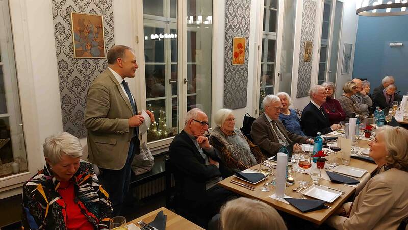 An einer neuen Stätte feierte die DFG Mainz am 3.12.25 ihr diesjähriges Dîner Amical: Auf der Zitadelle Mainz, in der (fast) gleichnamigen Gaststätte Citadelle. Vizepräsident Michael Grabis begrüßte die zahlreich erschienenen Gäste, gab einen kurzen Rückblick auf die Aktivitäten des Vereins im Jahr 2025 und stellte die Planungen für das Jahr 2026 vor. Er dankte ausdrücklich allen Aktiven, die zum Gestaltung des Programms und der Feier beigetragen haben. Fotos: Jörg Haberfelner und Alfons Rath